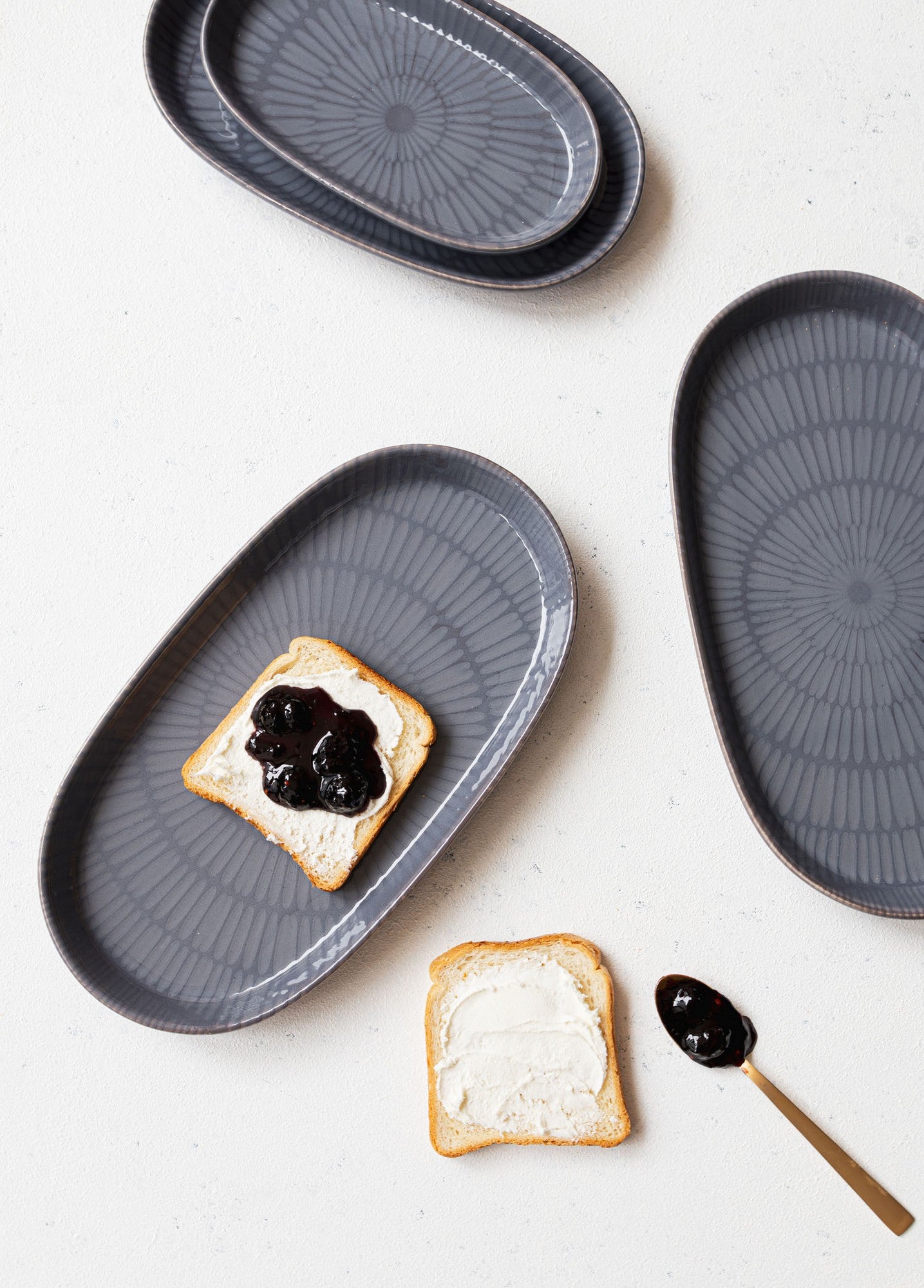 Conjunto de travessas – 16 x 29 x 4 cm – Cinza – Cerâmica