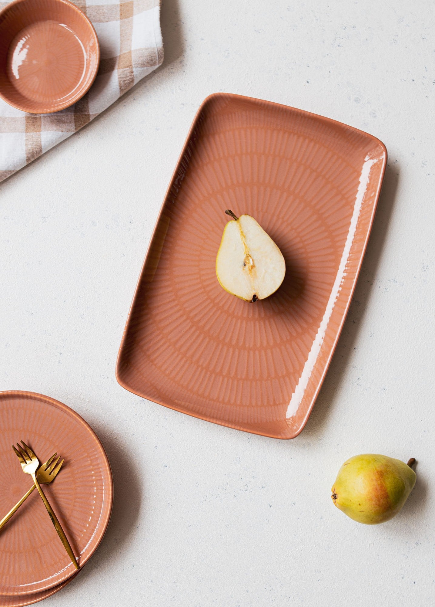 Quer esteja a organizar um jantar ou simplesmente a desfrutar de uma refeição com os seus entes queridos, o nosso prato de serviço em cerâmica é a tela perfeita para mostrar as suas criações culinárias. O seu design elegante e a bonita cor somon farão com que os seus pratos pareçam ainda mais apetitosos e sedutores.