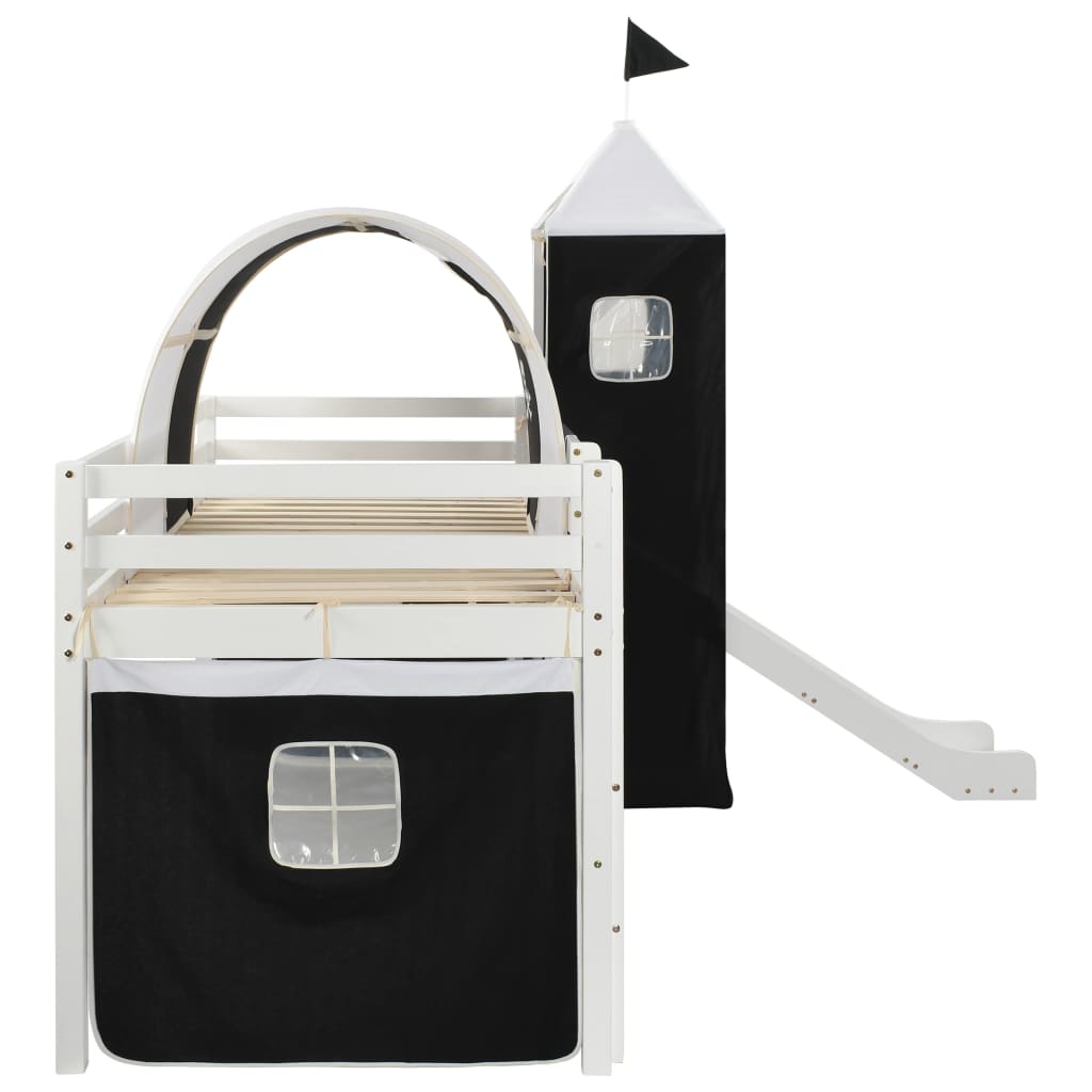 As barras de proteção de ambos os lados da cama manterão o seu pequeno pirata no seu beliche. O espaço por baixo da cama transforma-se no quartel general do capitão com as paredes laterais que incluem janelas. A cama alta possui um escorrega divertido e uma escada, ambos os quais podem ser cobertos com a tenda incluída. O escorrega e a escada podem ser montados tanto à esquerda como à direita e está também incluído um toldo para cobrir a cama. A cama é adequada para um colchão de 90 x 200 cm.