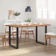 Esta mesa de jantar é feita em madeira de acácia maciça, uma madeira tropical famosa pela sua robustez e grãos ricos. O formato e bordas vivos do tampo são processados deliberadamente, para que o caráter original e a impressão natural da árvore sejam trazidos até à decoração do seu interior! Cada etapa do processo é realizada com o máximo cuidado, seja o polimento, a pintura ou o envernizamento. As pernas de aço completam a aparência industrial e contribuem para a construção robusta.