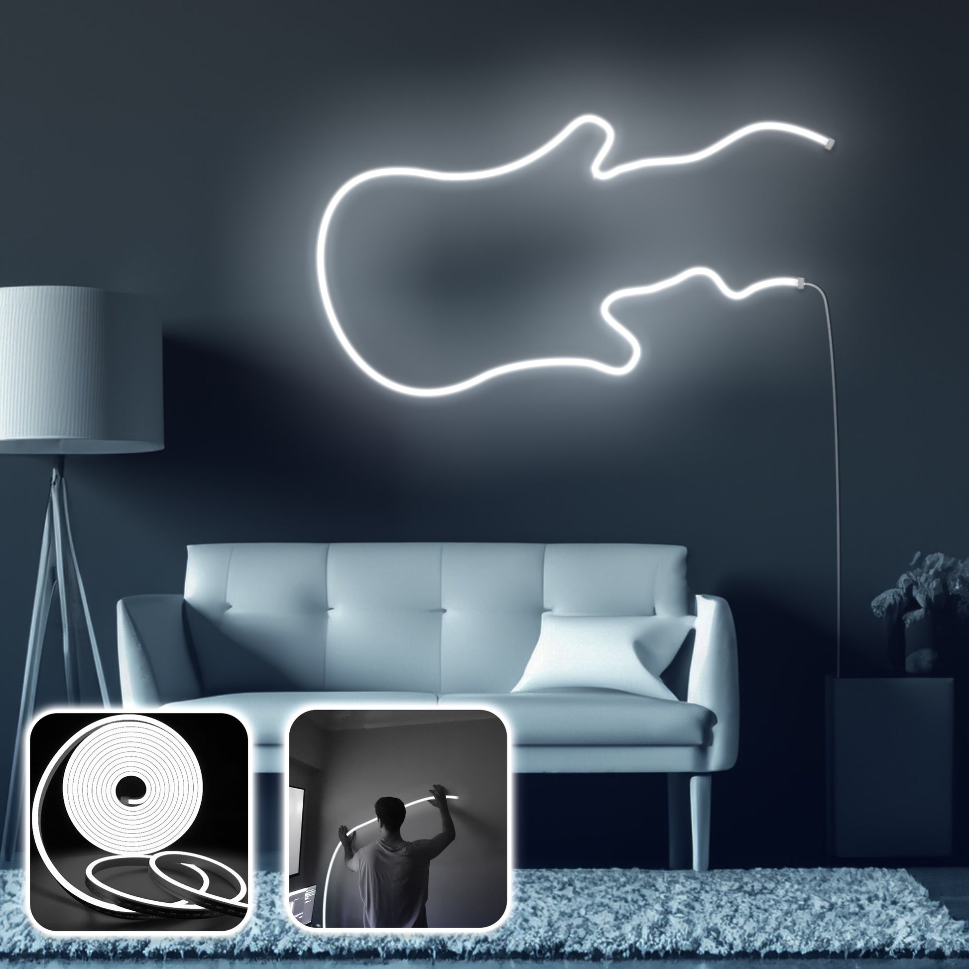 Com um comprimento total de cabo de 350 cm e 300 cm de fita dupla face, a instalação é muito simples. Basta conectar o adaptador com saída de 12V 1A DC e assistir enquanto seu espaço se transforma em uma obra de arte. O neon à prova d'água IP67 garante durabilidade e longevidade, para que você possa desfrutar de sua nova iluminação por muitos anos.