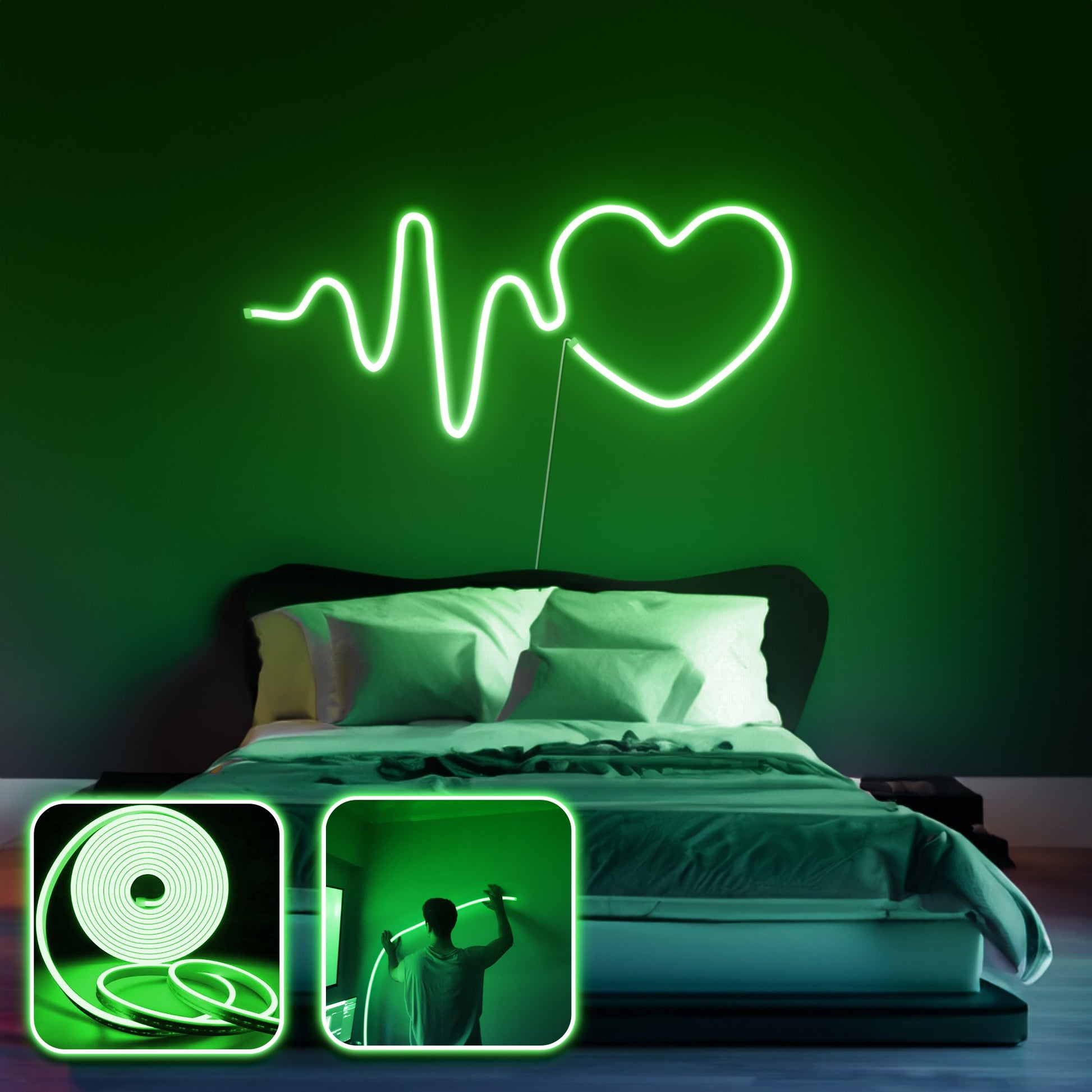 O suave brilho verde das tiras de neon cria uma atmosfera calma e relaxante que ajudará você a descontrair após um longo dia. Se você está procurando criar um cantinho de leitura aconchegante ou um refúgio relaxante no quarto, esta iluminação definirá o clima perfeito.