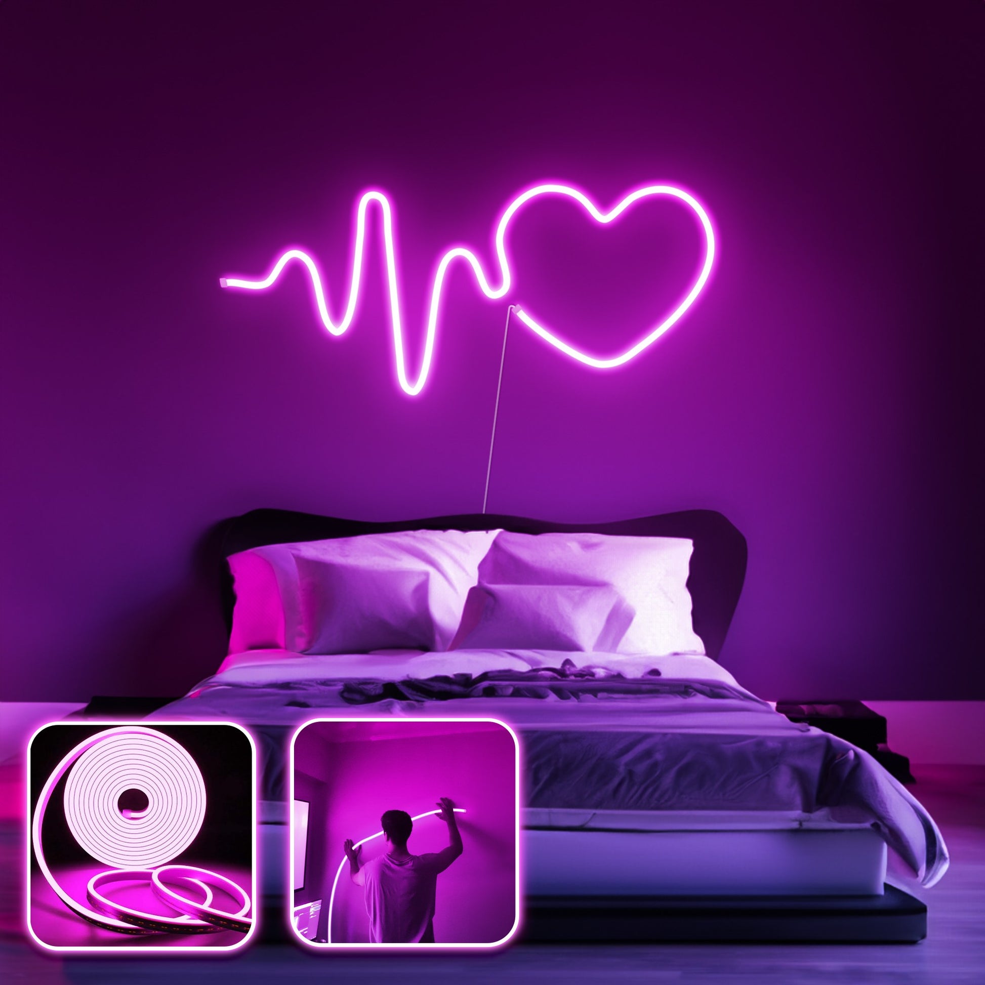 A flexibilidade das nossas tiras de néon permite-lhe dar largas à sua criatividade e conceber padrões e formas únicos nas suas paredes. Dê largas à sua imaginação e transforme o seu espaço numa obra de arte. Com a fita de dupla face de 300 cm incluída, a instalação é muito fácil, dando-lhe a liberdade de experimentar diferentes disposições.
