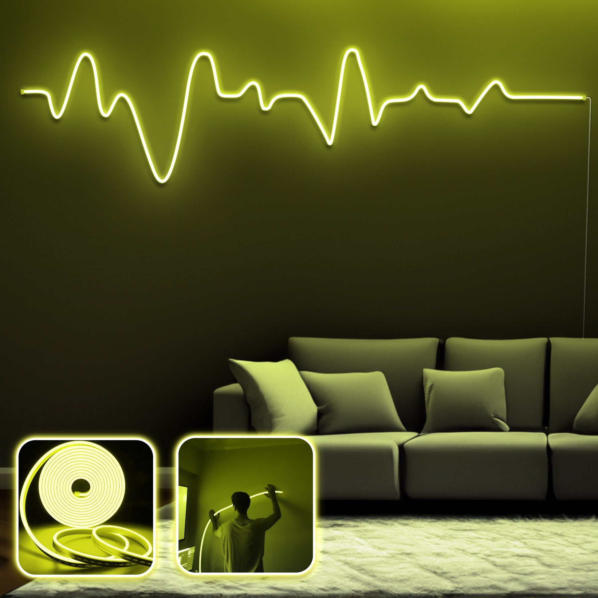 Com nossa Iluminação LED Decorativa para Paredes, você pode facilmente criar uma atmosfera aconchegante em qualquer cômodo. A cor amarela quente das fitas de neon adiciona um brilho suave ao seu espaço, tornando-o o lugar perfeito para relaxar e descontrair após um longo dia.