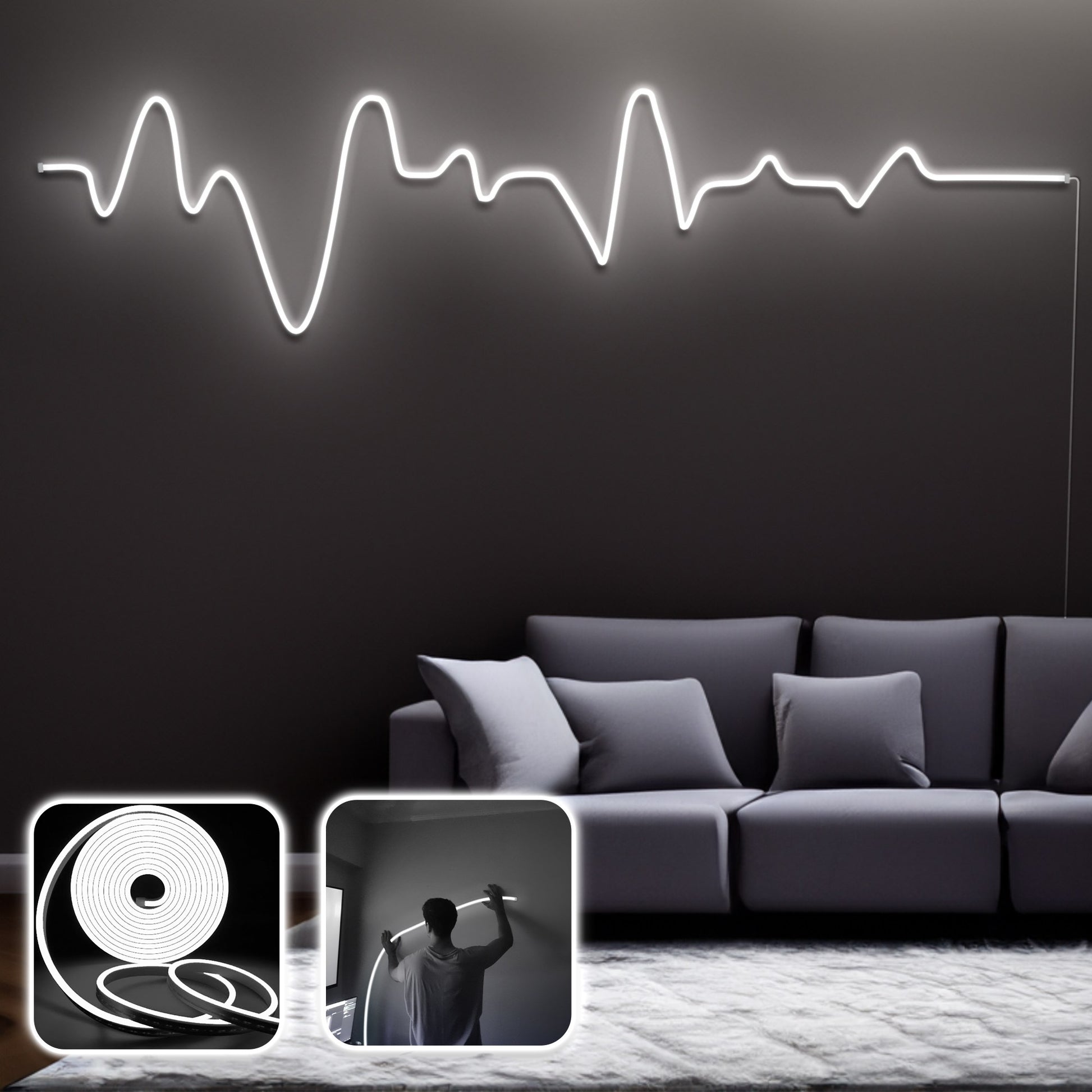 Com as suas tiras de néon flexíveis, esta solução de iluminação permite-lhe dar largas à sua criatividade e conceber um espaço que reflicta verdadeiramente a sua personalidade. Quer pretenda criar uma atmosfera acolhedora e íntima ou uma vibração vibrante e enérgica, a nossa iluminação decorativa de parede LED tem tudo o que precisa.
