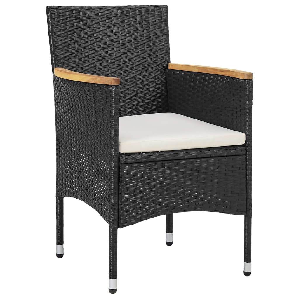 O conjunto de jantar prático para exterior possui uma estrutura de aço revestido a pó coberta com vime PE, tornando-o durável e adequado para utilização diária. Graças à sua construção leve, todos os artigos são fáceis de mover. A mesa é excelente para manter bebidas e alimentos ao alcance. As cadeiras foram concebidas com encostos e apoios de braços curvos para um aprimorado formato ergonómico, de modo a oferecer o máximo conforto. Estão incluídos almofadões densamente acolchoados para um apoio adicional e a capa com fecho de correr é removível para facilitar a lavagem.