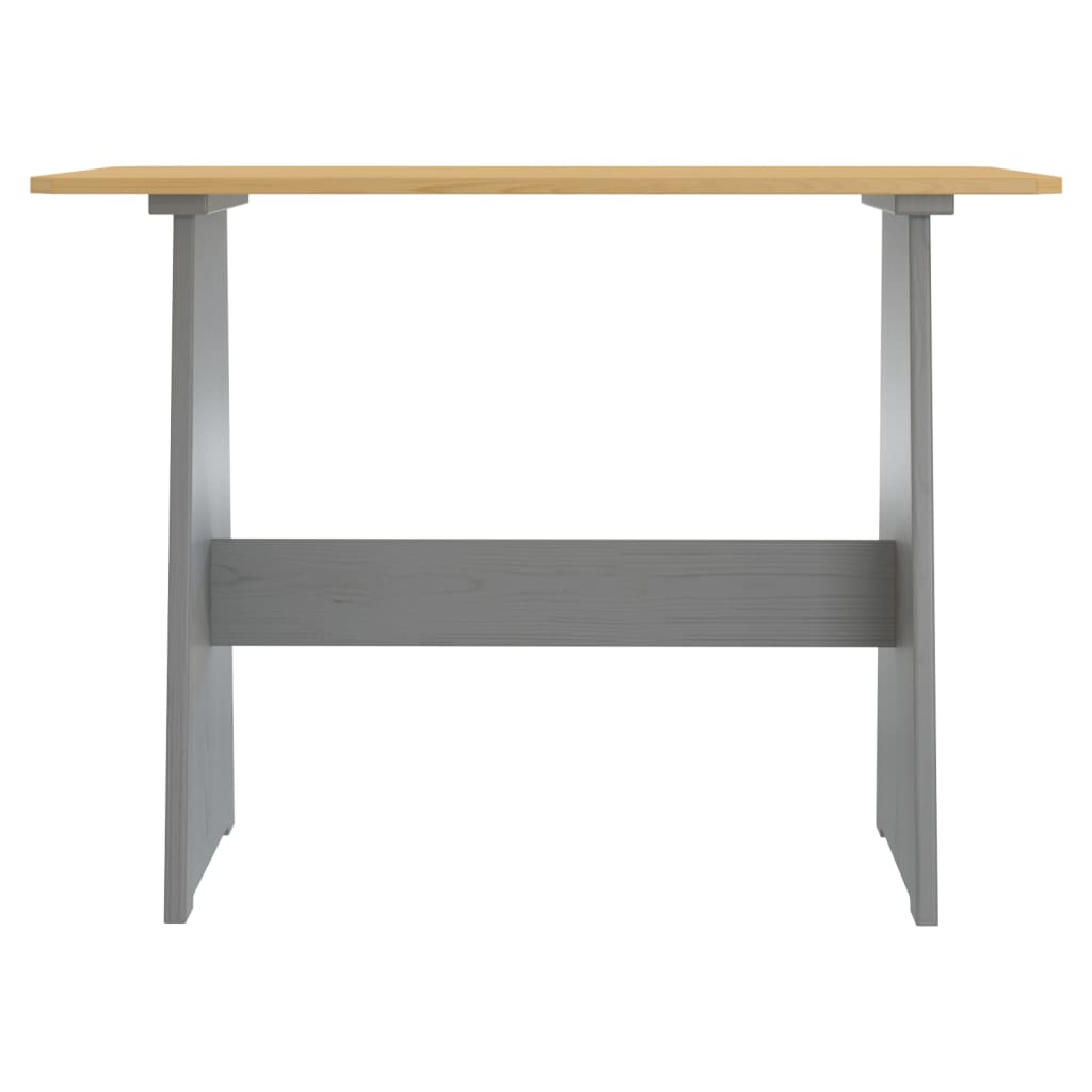 Feito em madeira de pinho maciça, o conjunto de jantar destaca-se pela sua durabilidade. O encosto do banco de canto contribui para o seu conforto de assento. O banco longo pode ser montado tanto do lado esquerdo como do lado direito para ajustar-se a diferentes configurações. A mesa é ideal para colocar refeições e bebidas. É utilizado para refeições casuais ou como um ótimo local para fazer os trabalhos de casa ou terminar aquele projeto em casa.