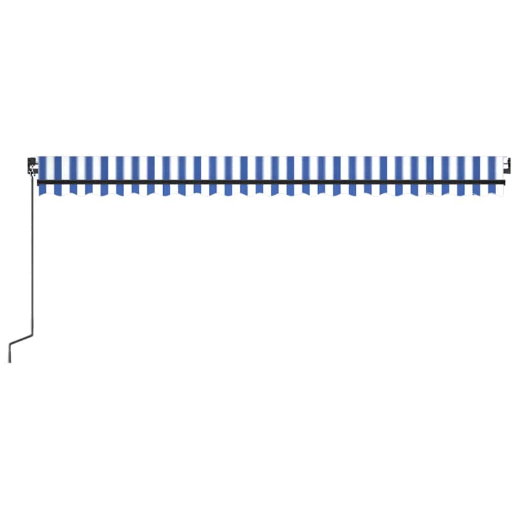 Toldo retrátil manual com LED 500x300 cm azul e branco