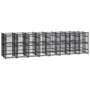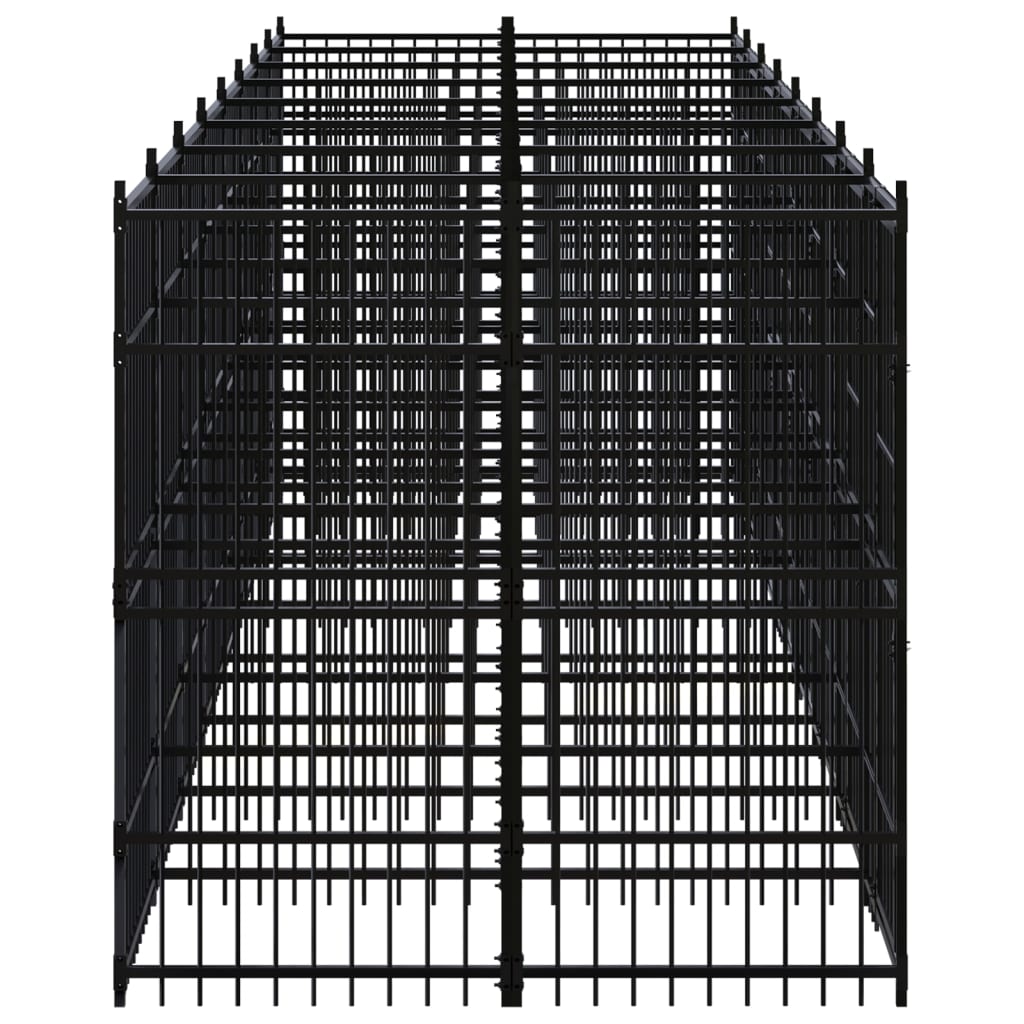 Este canil oferece um amplo espaço para exercícios. As paredes compostas por barras de aço ajudam a evitar danos e acidentes inesperados, permitindo ventilação. Graças à construção robusta de aço revestido a pó, este canil é durável. A porta articulada com um sistema de trinco garante segurança e proteção adicional aos seus cães.