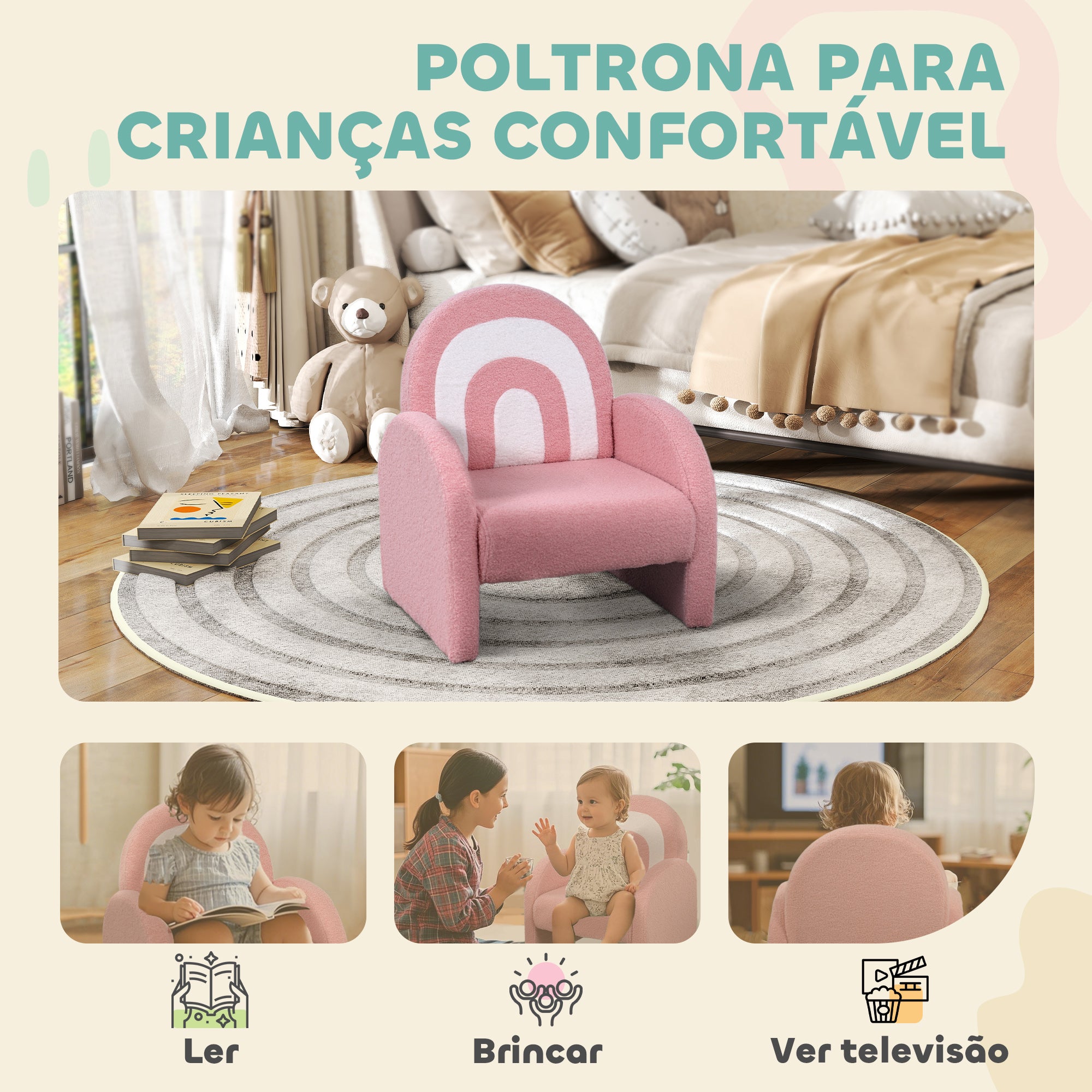 Poltrona Infantil Arco-Íris Rosa 45x41x52 cm