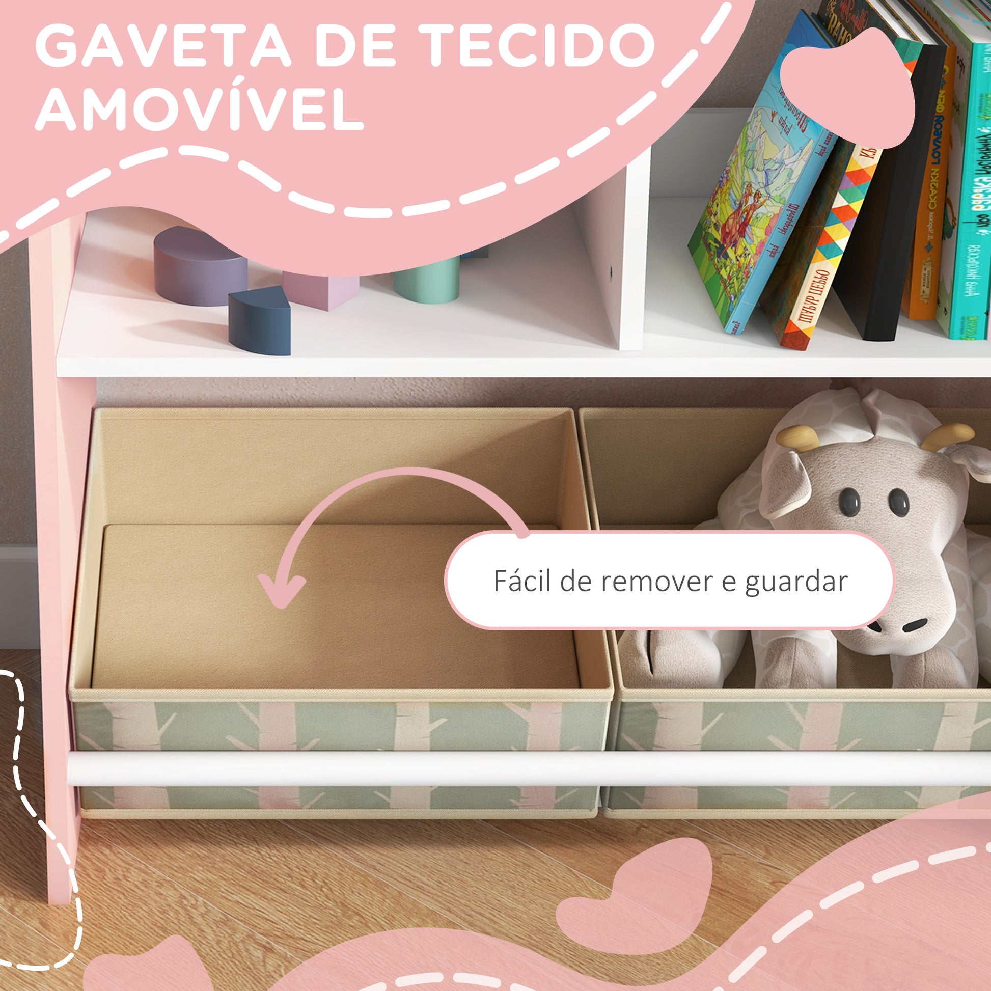 - Usos recomendados: Organização de brinquedos, livros e itens infantis