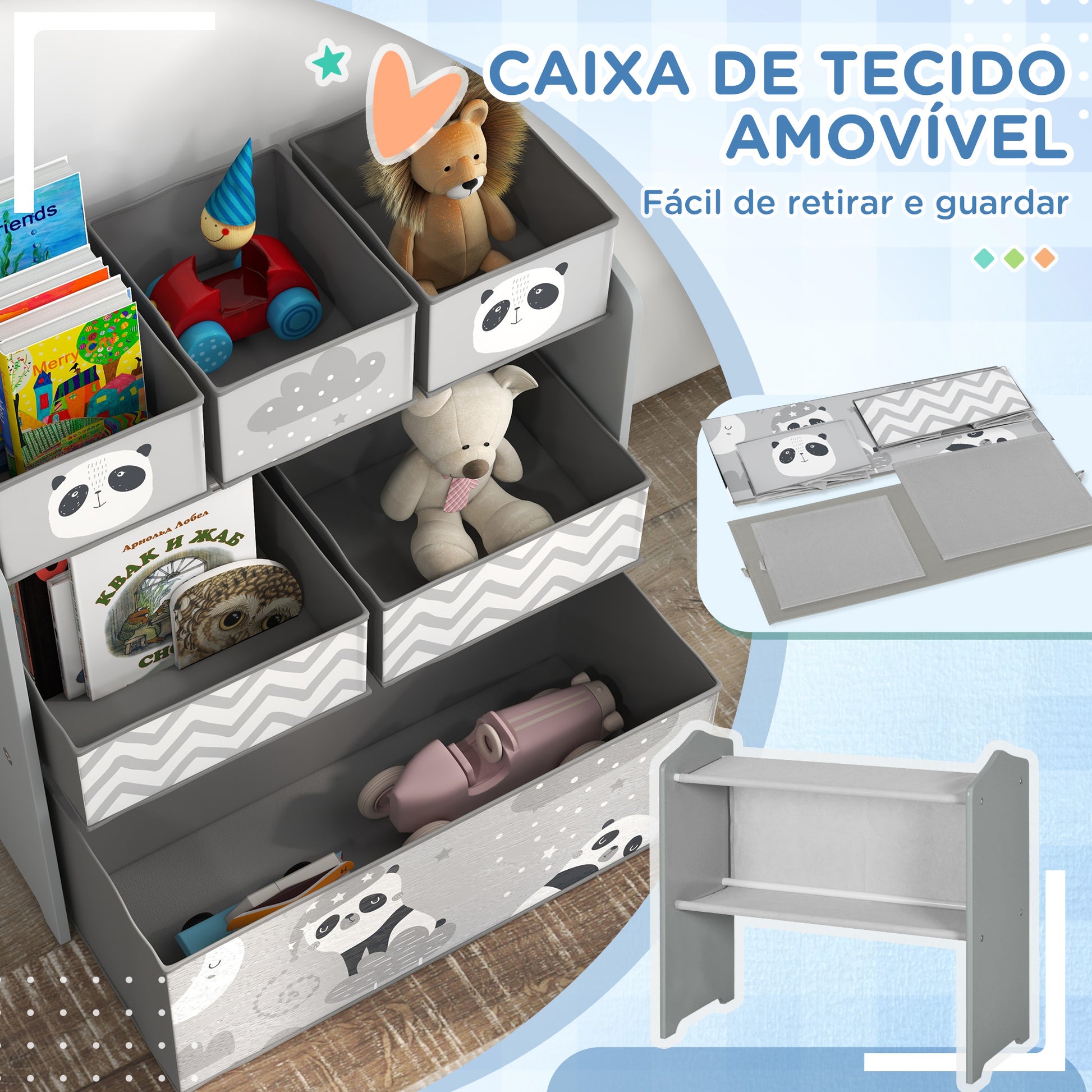 Organize os brinquedos das crianças de forma prática e segura com esta estante organizadora cinzenta.