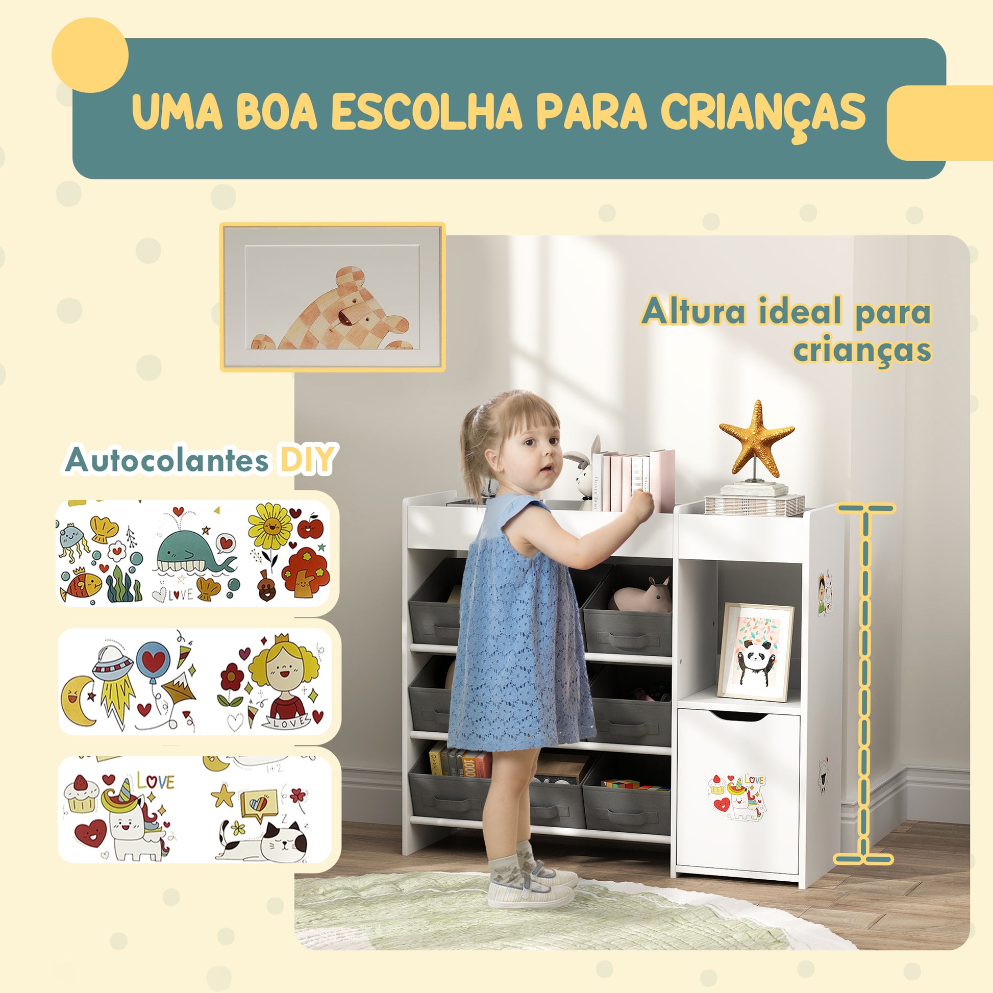A montagem é necessária e o pacote inclui 1 Organizador de Brinquedos, 9 Cestos e 1 Manual de instruções. Aproveite este móvel seguro e prático para incentivar a autonomia das crianças e manter o espaço organizado!