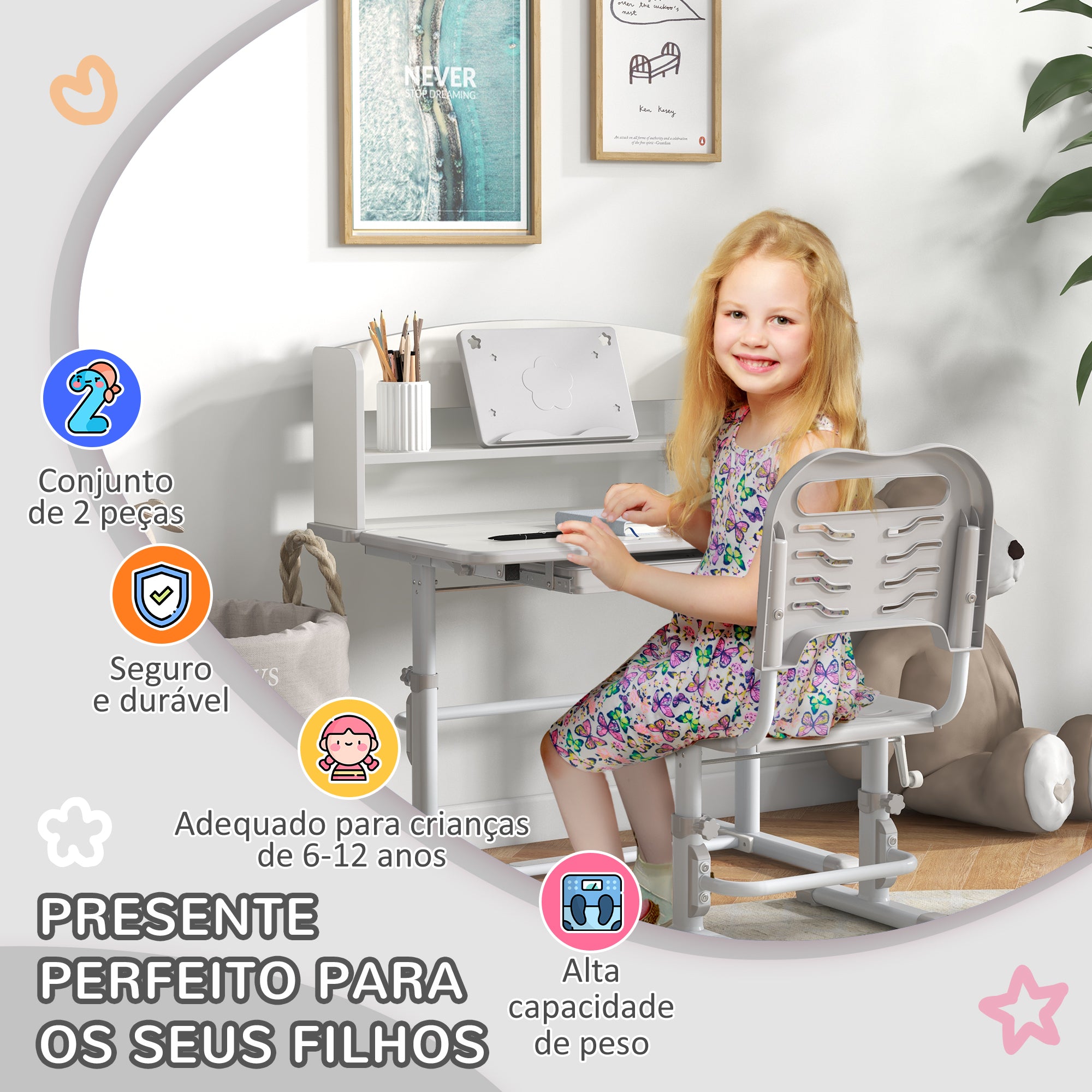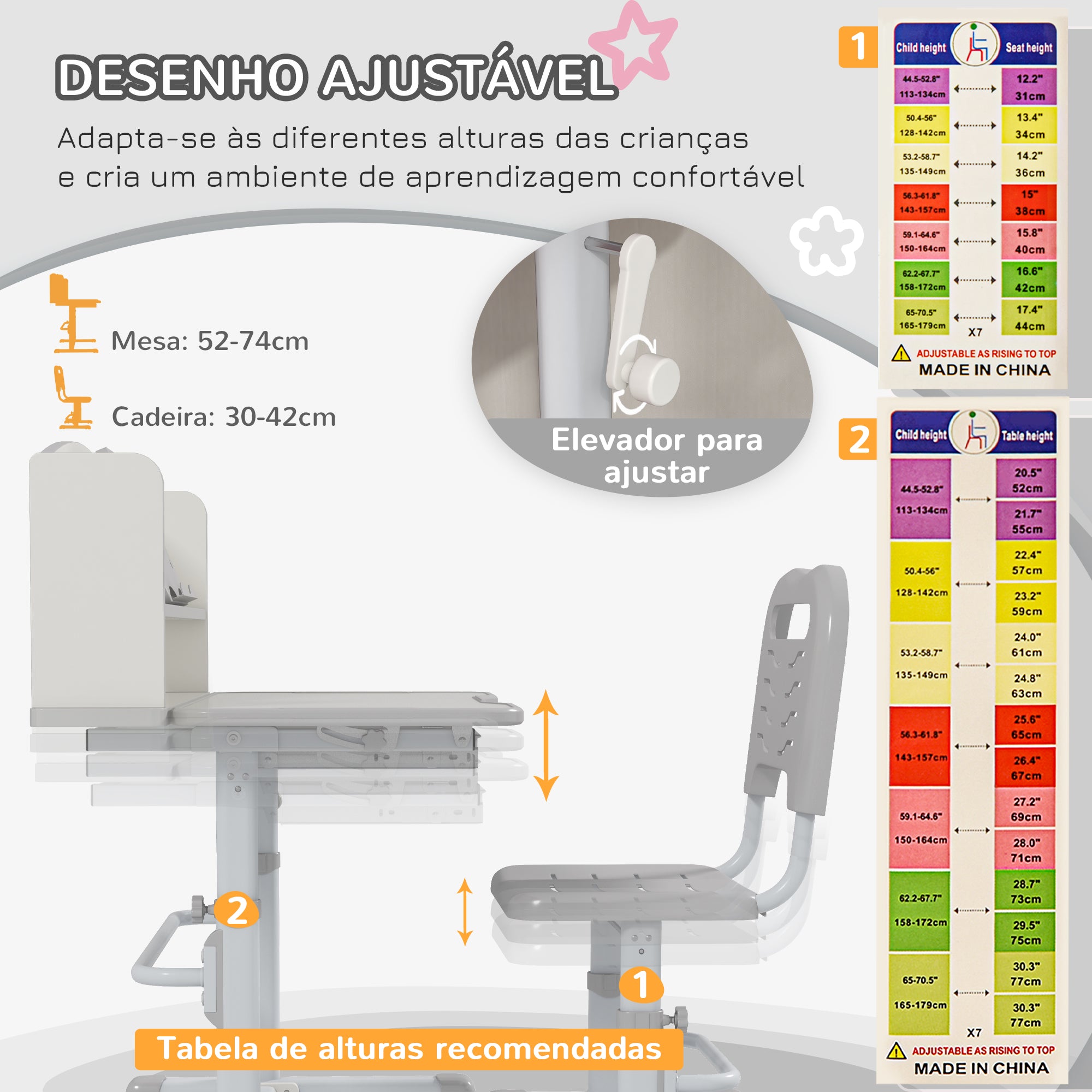 Secretária e Cadeira para Crianças – 80x54,5x82-104 cm – Cinzento – MDF e Aço