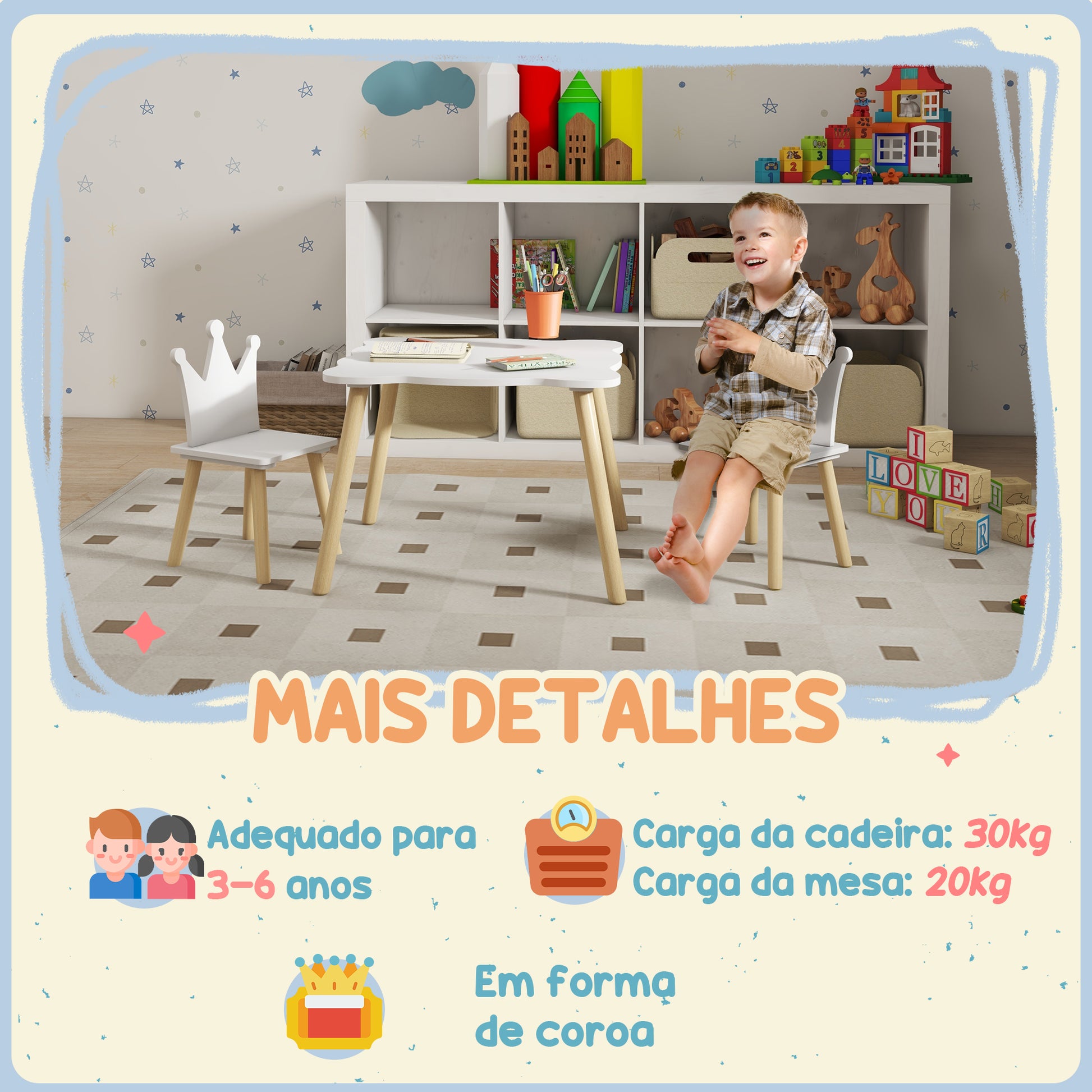 Conjunto de Mesa e Cadeiras Infantis Coroa Branca 60x60x44 cm