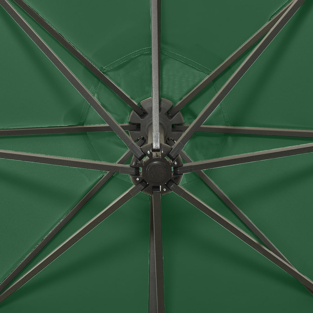 Guarda-sol jardim cantilever c/ poste e luzes LED 300 cm verde