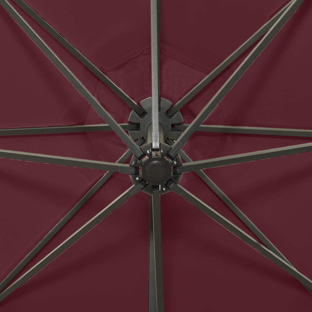 Guarda-sol jardim cantilever c/ poste e luzes LED 300 cm bordô