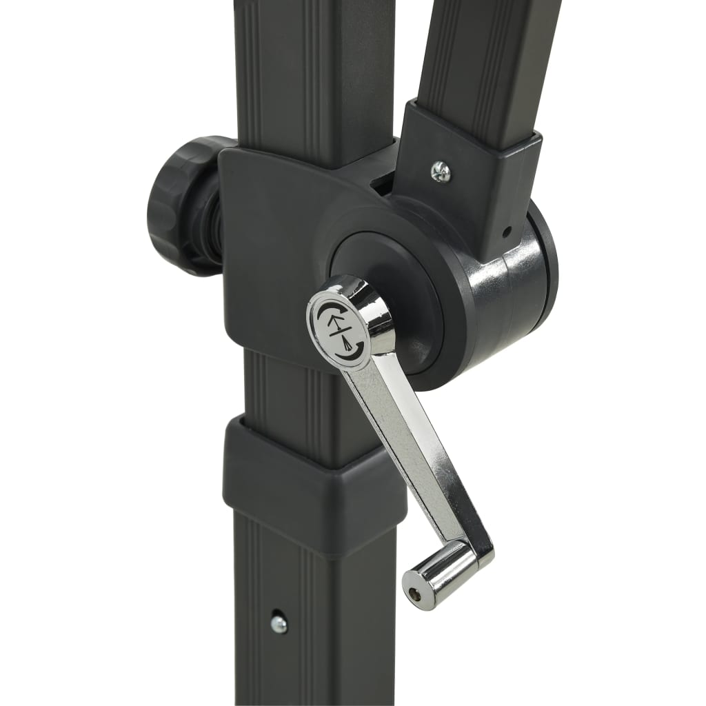 Feita de poliéster com proteção UV e à prova de desbotamento, a cobertura do guarda-sol oferece-lhe a proteção ideal contra o sol e é fácil de limpar. Possui uma base cruzada robusta para adicionar estabilidade. O design exclusivo deste guarda-sol permite-lhe ser inclinado e rodado a 360º para bloquear o sol. O poste de alumínio forte, juntamente com as 8 varetas, tornam o guarda-sol muito estável e durável. Este guarda-sol de jardim pode ser facilmente aberto e fechado graças ao mecanismo de manivela. O design de toldo duplo ajuda com a ventilação.