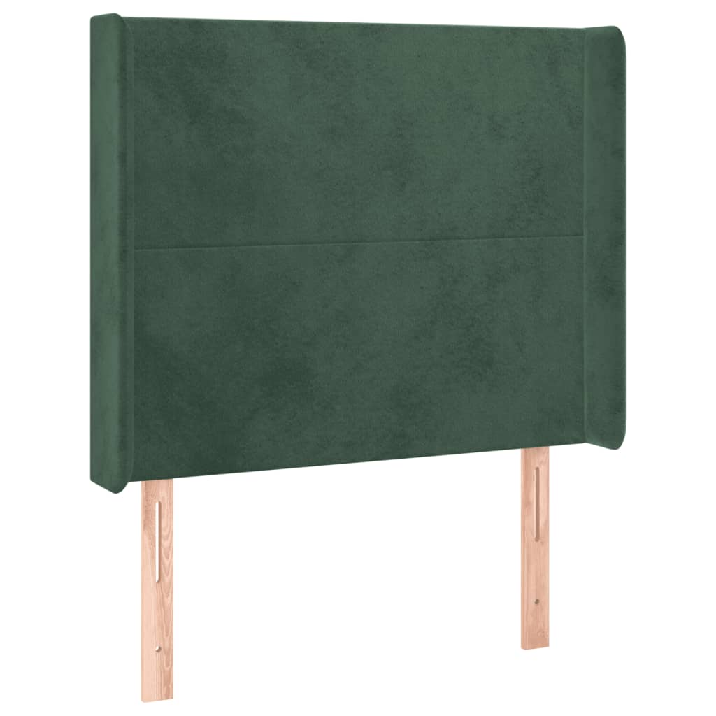Cabeceira cama c/ luzes LED veludo 93x16x118/128cm verde-escuro