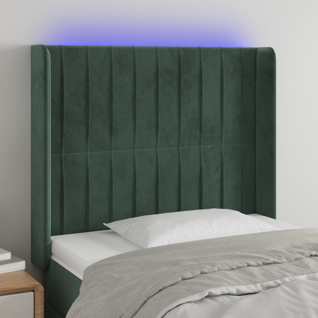 Cabeceira cama c/ luzes LED veludo 83x16x118/128cm verde-escuro