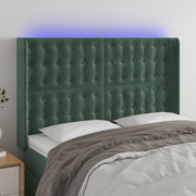 Cabeceira de cama c/ LED veludo 147x16x118/128 cm verde-escuro