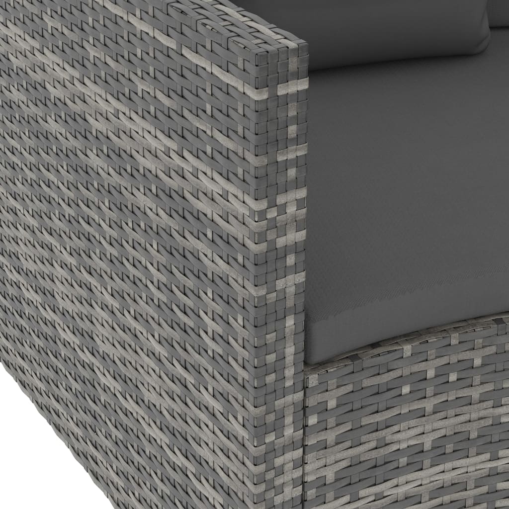 6 pcs conjunto lounge de jardim c/ almofadões vime PE cinzento