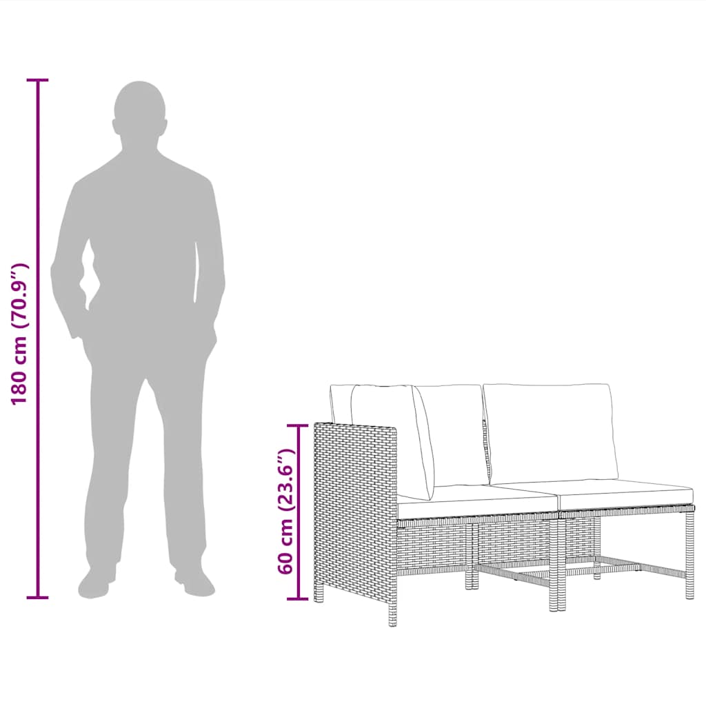 2 pcs conjunto sofás de jardim com almofadões vime PE preto