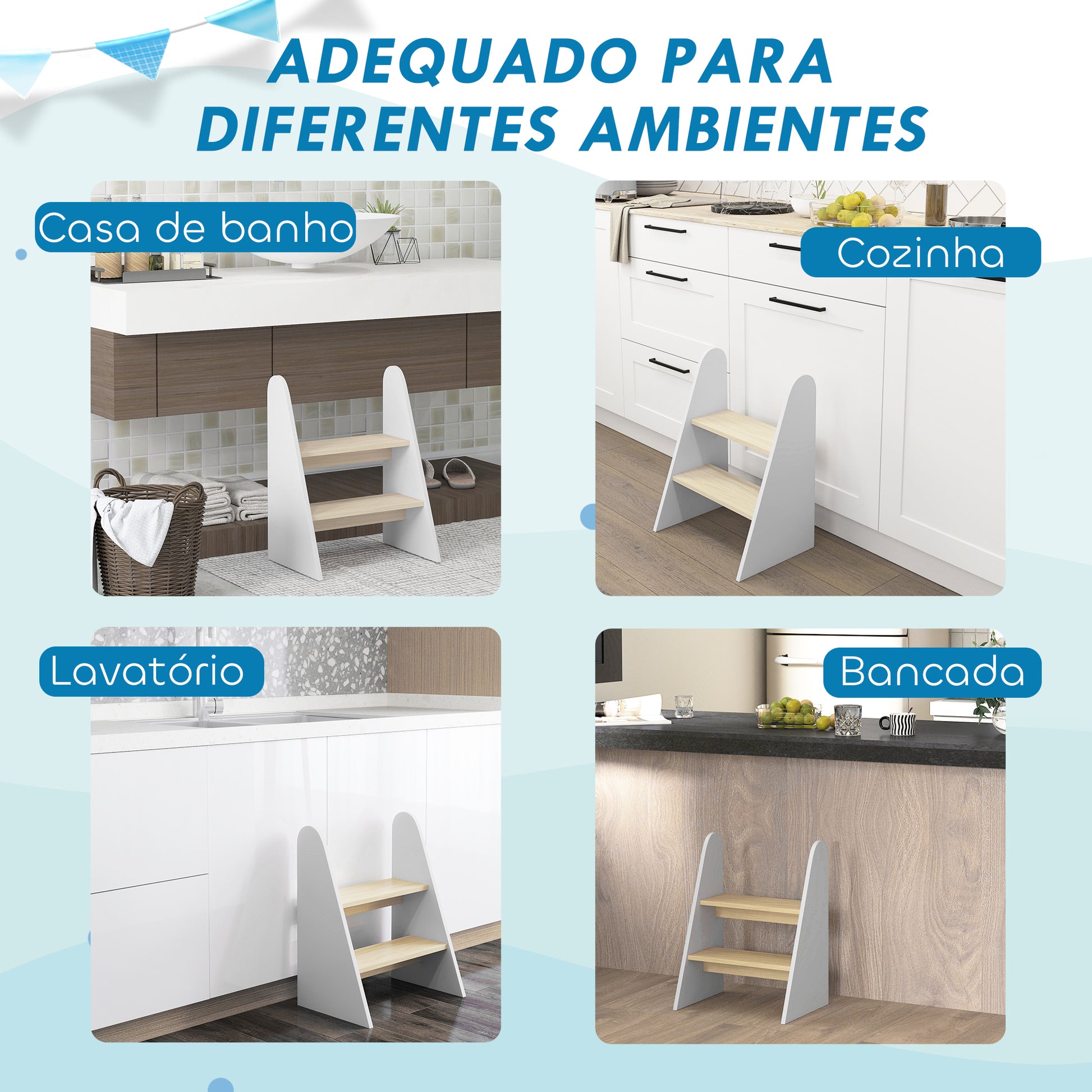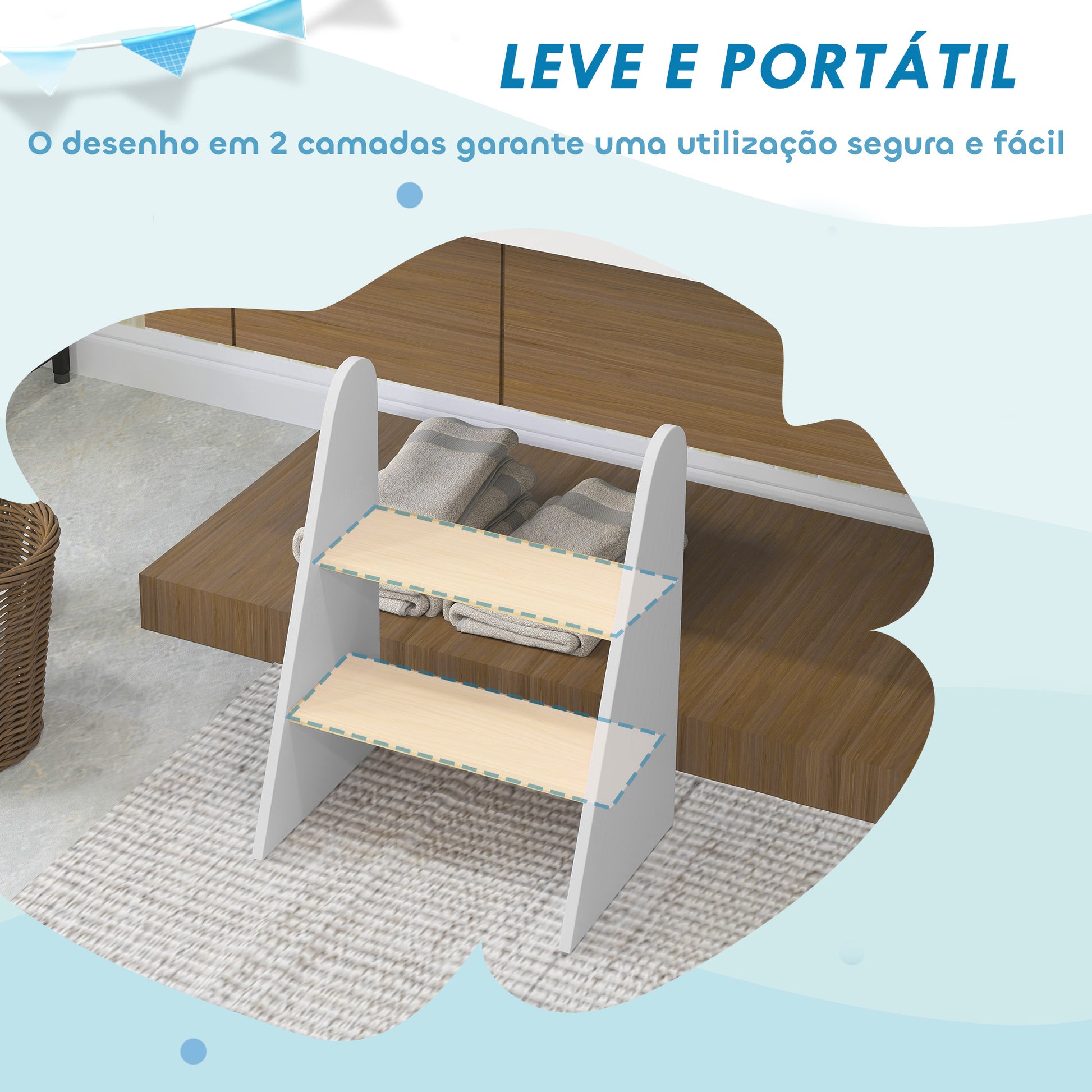 Banco Infantil de 2 Degraus – 43x30x55 cm – Branco – MDF