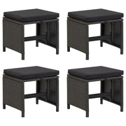 Bancos de jardim 4 pcs com almofadões vime PE preto