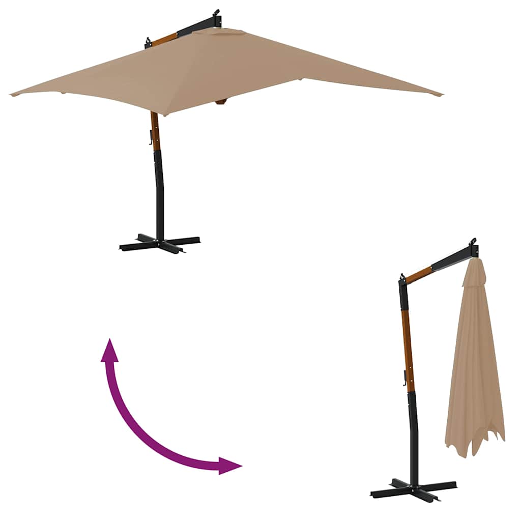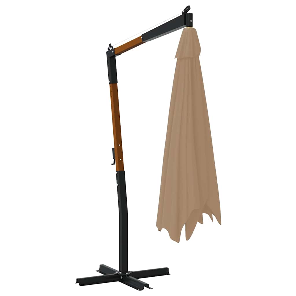 Guarda-sol cantilever c/ poste de madeira cinzento-acastanhado