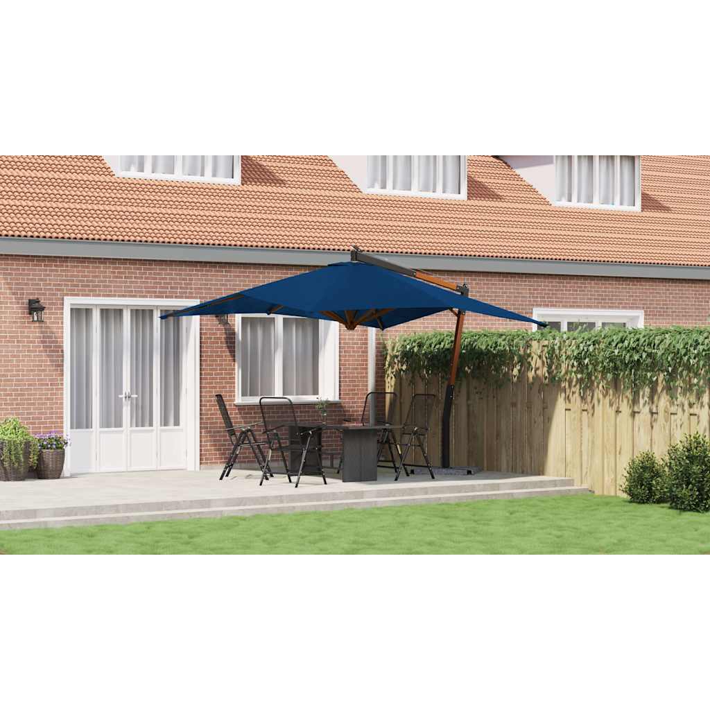 Guarda-sol cantilever c/ poste de madeira 400x300 cm azul