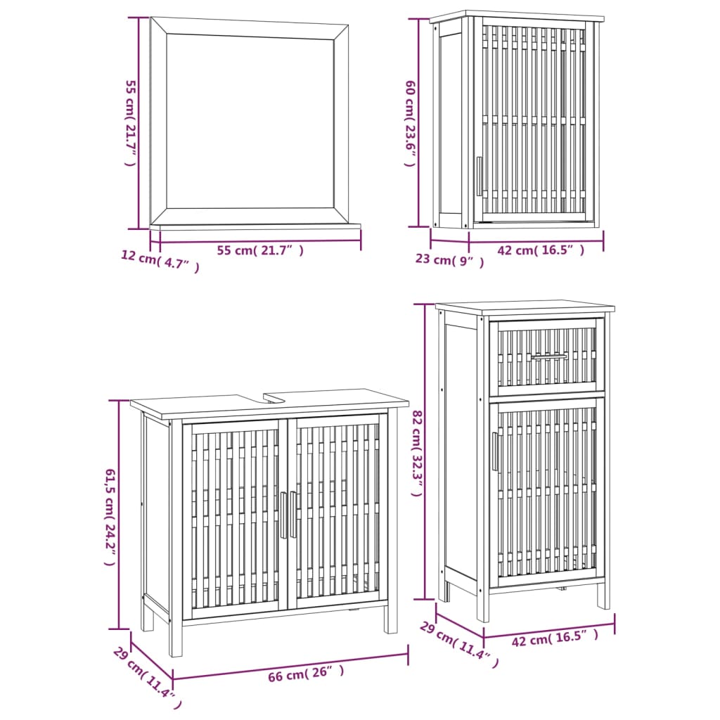 4 pcs conjunto de móveis p/ casa de banho nogueira maciça