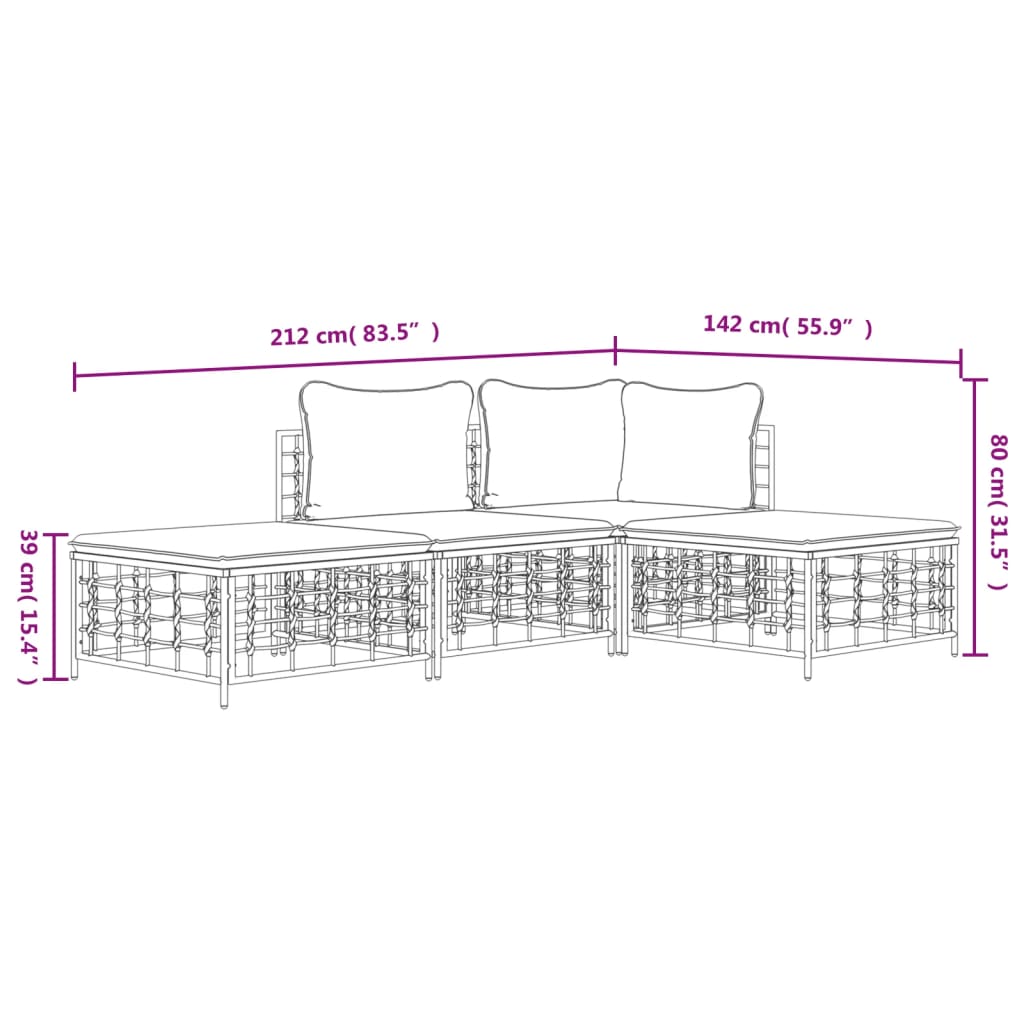 4 pcs conjunto lounge de jardim c/ almofadões vime PE antracite