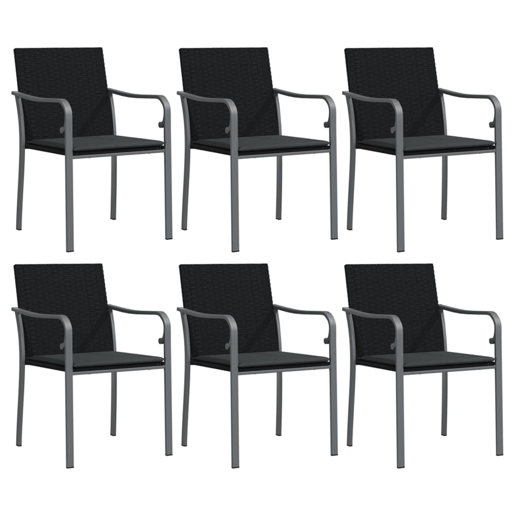 7 pcs conjunto de jantar p/ jardim c/ almofadões vime PE e aço
