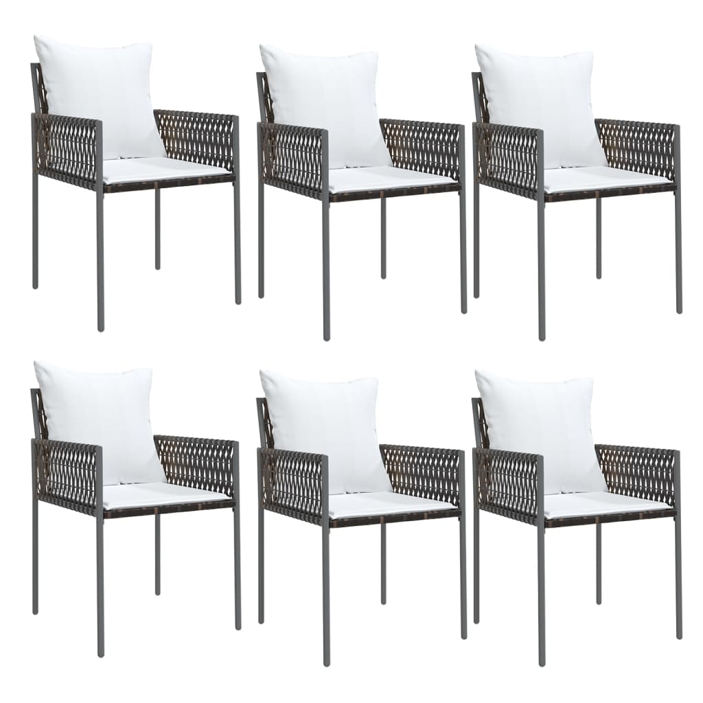7 pcs conjunto de jantar p/ jardim c/ almofadões vime PE e aço