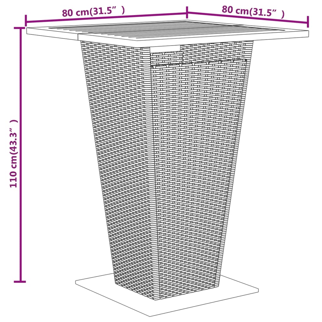 5 pcs conjunto de bar p/ jardim vime PE/acácia maciça preto