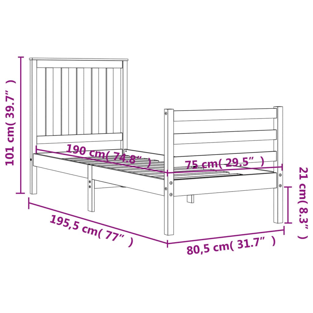 - Tamanho adequado de colchão (colchão não incluído): 75 x 190 cm (L x C)