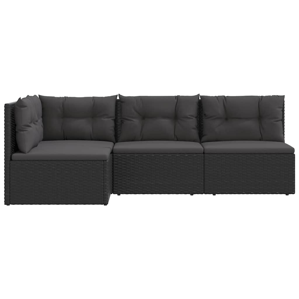 4 pcs conjunto lounge de jardim c/ almofadões vime PE preto