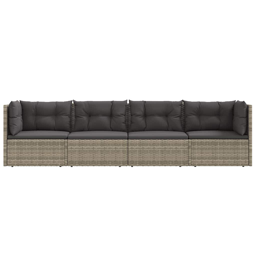 4 pcs conjunto lounge de jardim c/ almofadões vime PE cinzento
