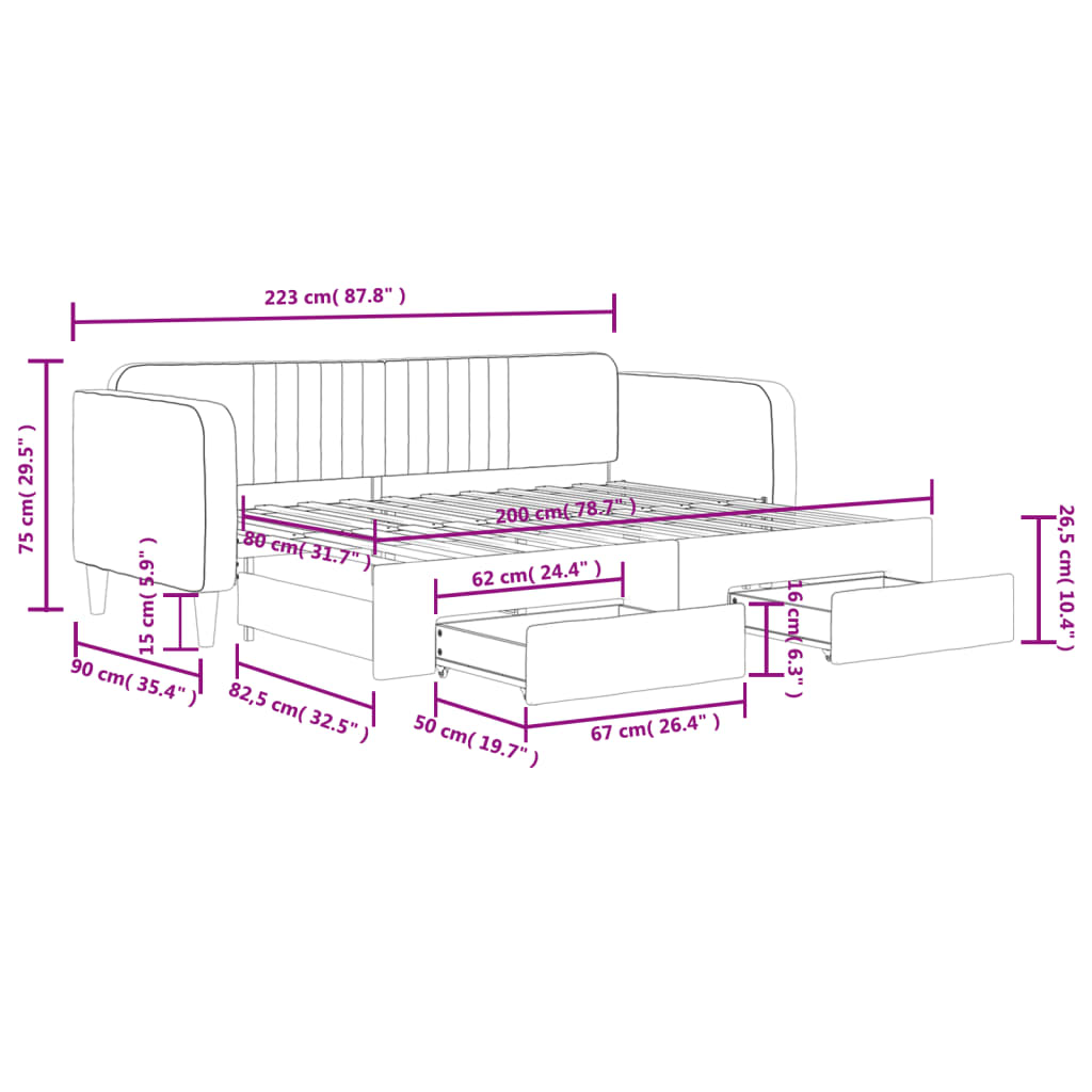 Sofá-cama com gavetão e gavetas 80x200 cm veludo amarelo