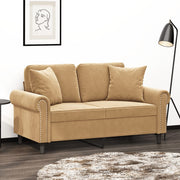 Sofá 2 lugares c/ almofadas decorativas 120 cm veludo castanho