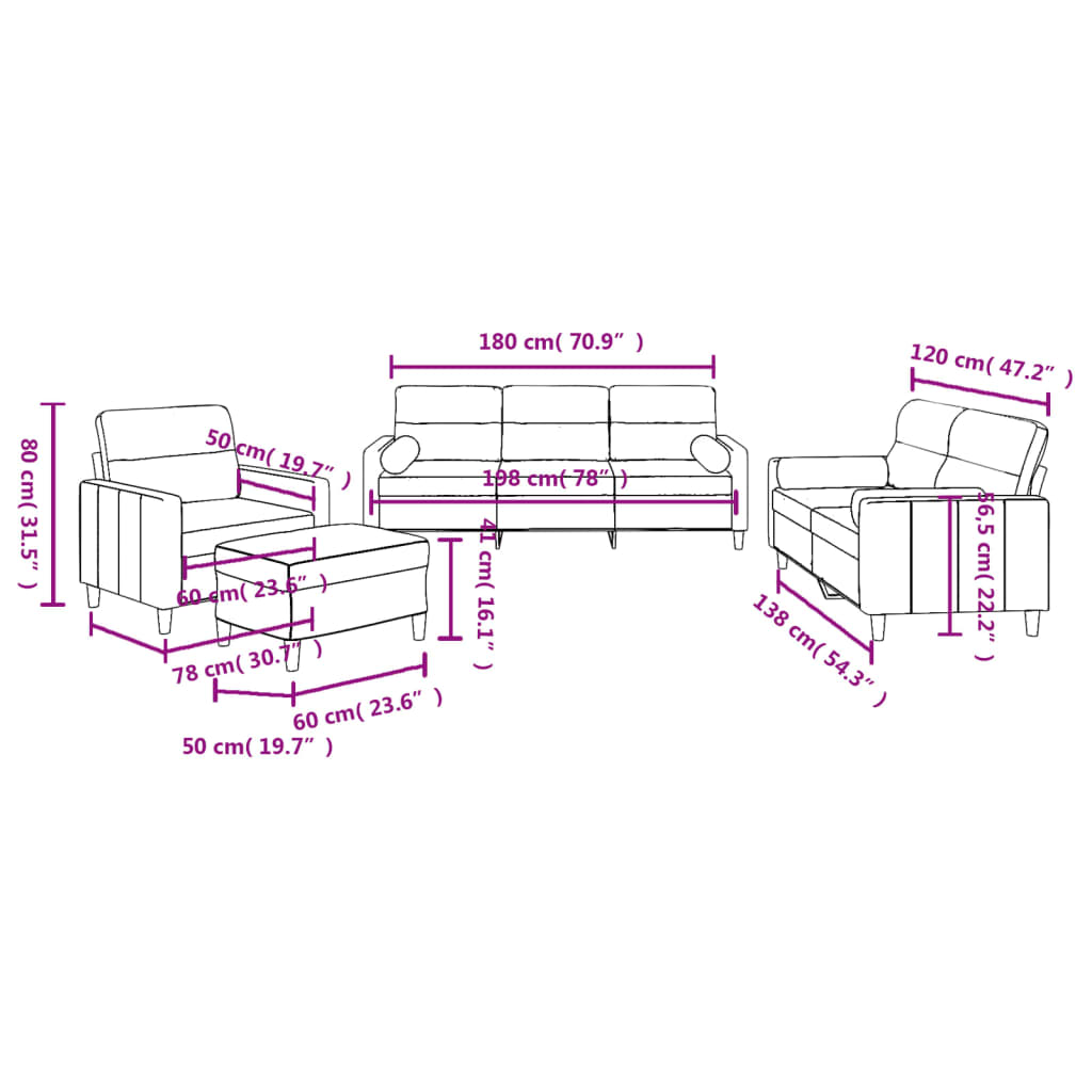 4 pcs conjunto de sofás com almofadas tecido castanho