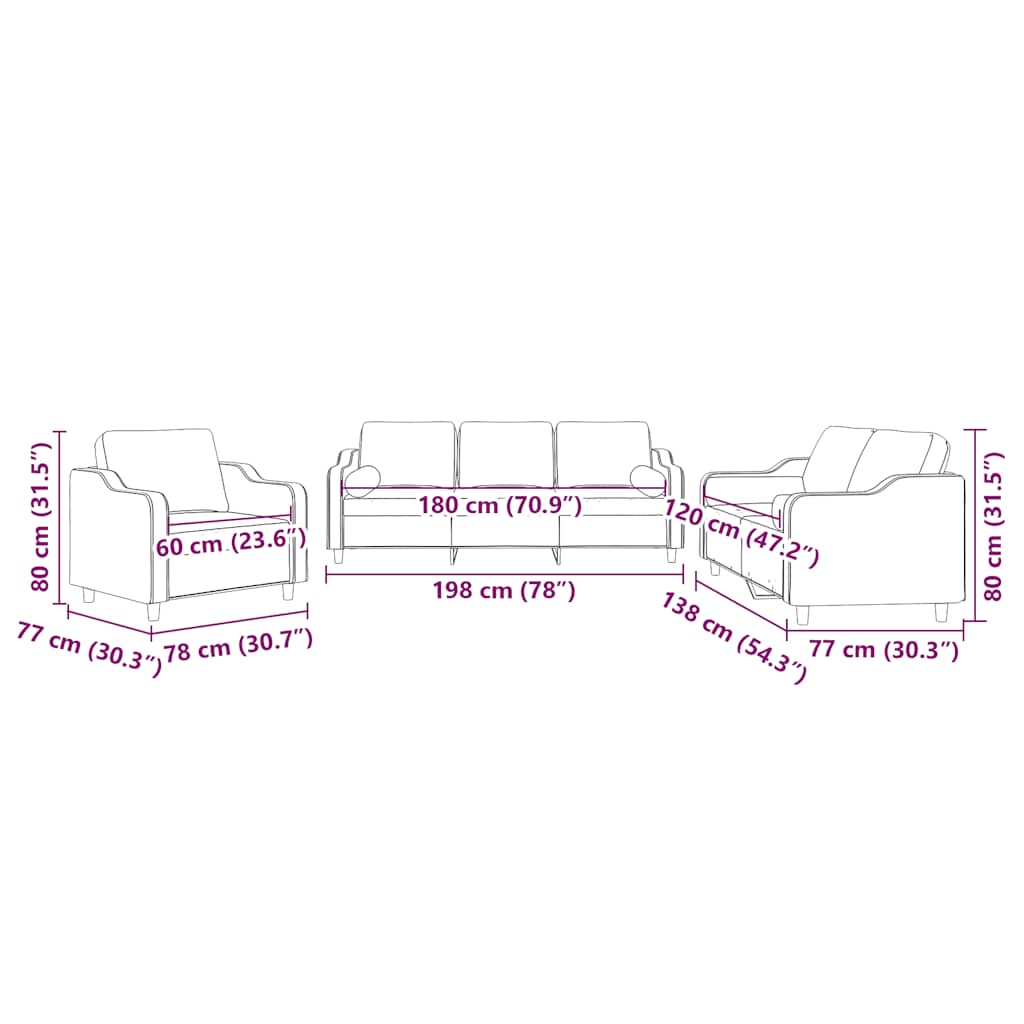 3 pcs conjunto de sofás com almofadas tecido amarelo-claro