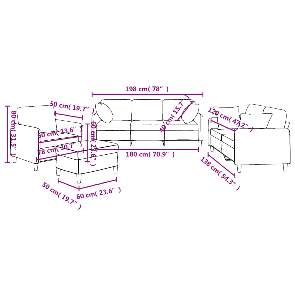 4 pcs conjunto de sofás com almofadas tecido cor creme