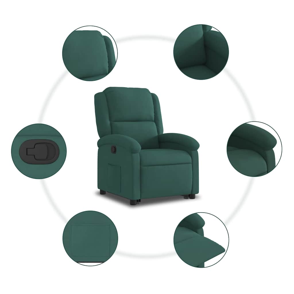 Poltrona reclinável elevatória veludo verde-escuro