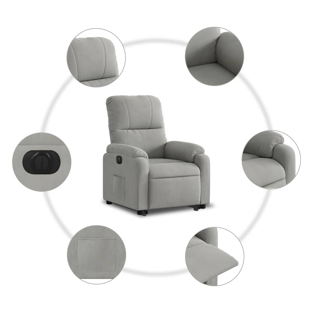 Poltrona reclinável elevatória elétrica microfibra cinza-claro