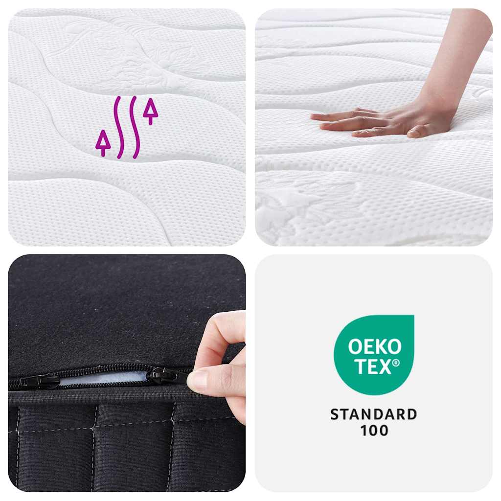 - Fácil de utilizar: a pega do colchão proporciona uma forma segura e fácil de levantar um colchão pesado e volumoso, facilitando a deslocação e o posicionamento. Além disso, o colchão de molas e espuma possui um fecho de correr comprido que facilita a remoção da capa para lavar.
