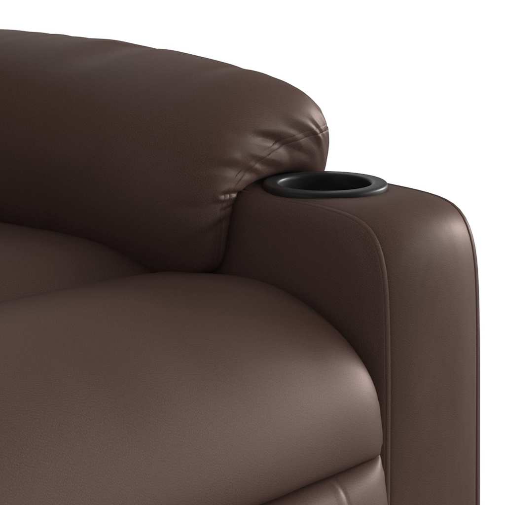 Poltrona reclinável elevatória elétrica couro artif. castanho