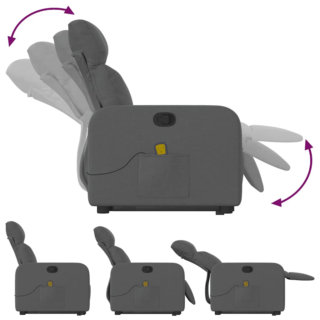 Poltrona elevatória de massagens tecido cinzento-escuro