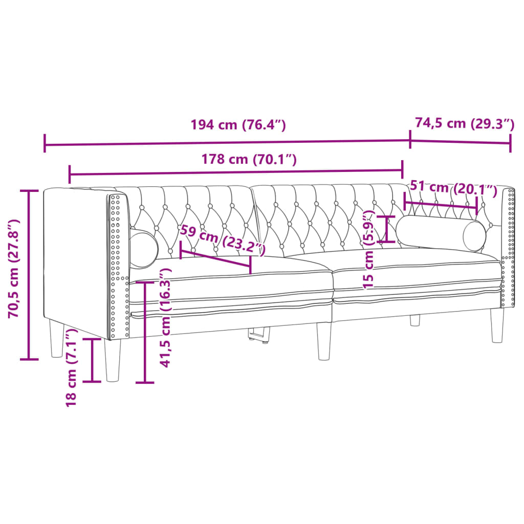 - Estilo chesterfield: com o encosto e apoios de braços clássicos com botões e uma altura uniforme nas costas e nos apoios de braços, o sofá elevará qualquer divisão, proporcionando estilo e conforto.